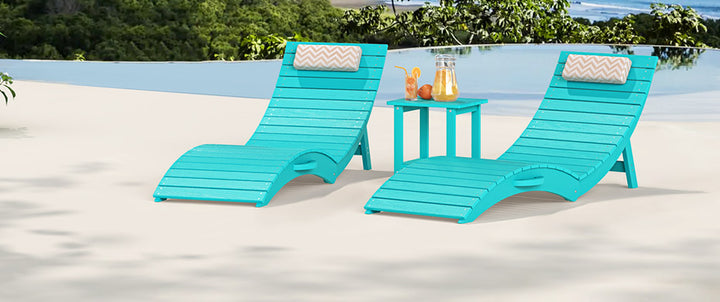 Add a matching table for drinks, snacks, and sunscreen within easy reach.