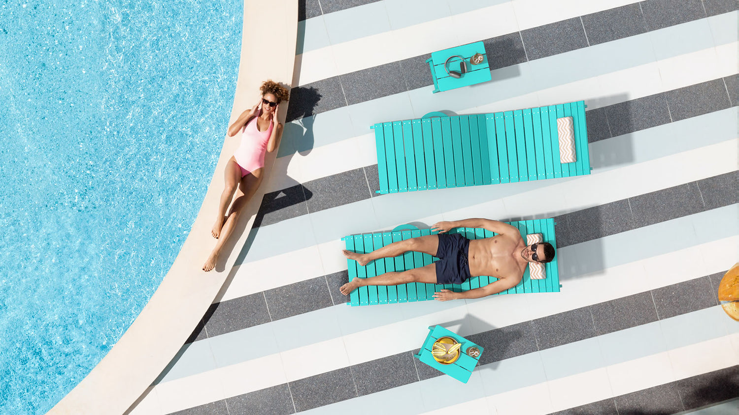 Our lounge is an authenticated pool-first design, backed by international registrations — not a look-alike or private-label copy.