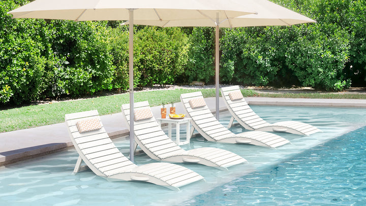 Add a matching table for drinks, snacks, and sunscreen within easy reach.